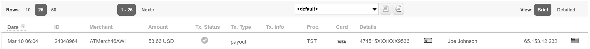 allows you to display all transactions for a specific Merchant or multiple Merchants |